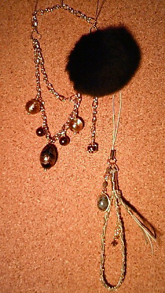 ストラップパーツがいっぱいあるため、最近はその辺にある在庫パーツつなげて適当に作ってます。